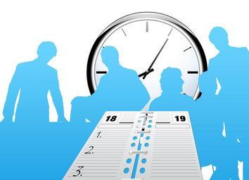 Keywords: clock time calendar agenda schedule office human personal silhouettes man businessmen economy development manager business kaufmann mr finance male management person organization workplace profession cooperation professions teamwork