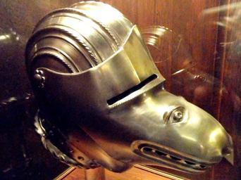 | Keywords: Close helmet with wolf-face visor, 20th century reproduction - Higgins Armory Museum - DSC05436.JPG Exhibit in the Higgins Armory Museum 100 Barber Avenue Worcester Massachusetts USA The museum permitted photography without any restriction both in writing and when I asked verbally I took this photograph 2011-09-24 10 55 20 Daderot Public domain Helmets in the Higgins Armory Museum Close helmets | ||||