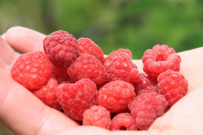 Keywords: close-up fresh girl hands natural raspberry red sweet food drink fruit