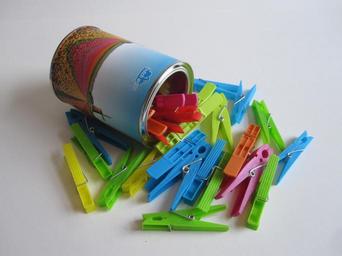 Keywords: clothes pegs colorful color yellow green red orange clothing hang wasdraad glance tin metal sheet paper white store gift