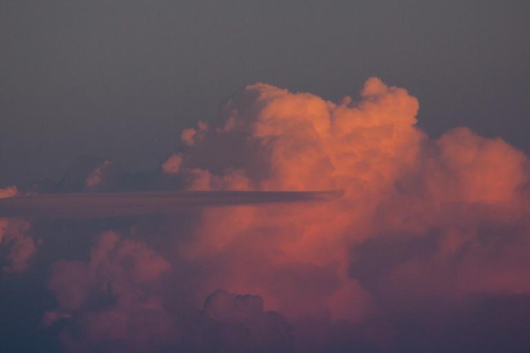Keywords: cloud afterglow orange red cumulus clouds cumulus thunderstorm sky blue grey rain weather storm clouds form