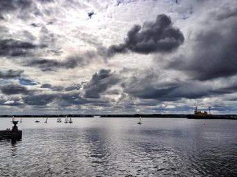 Keywords: clouds bay sky water reflection in the water