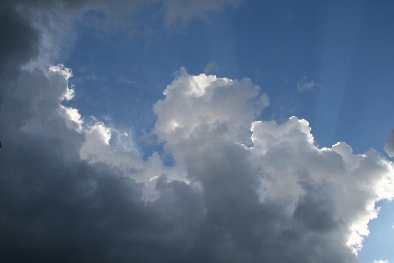 Keywords: clouds blue sky light backlight light on edges dark shadows