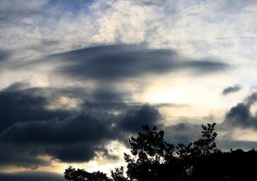 Keywords: clouds building dark areas light patches radient luminescent trees sky bush tops