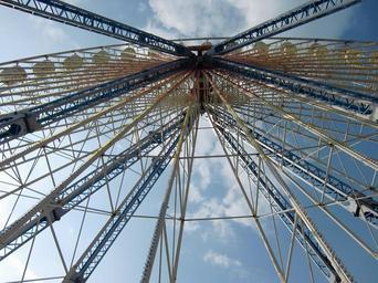 Keywords: clouds ferris wheel sky blue fair festival site ride architecture