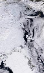 | Keywords: Clouds over Ice, Image of the Day DVIDS847616.jpg en In a photo-like satellite image the faintest of shadows or shading of grey may give them away but more often clouds over the poles simply disappear against the background camouflaged from the satellite's view by the underlying snow and sea ice For those trying to track clouds from space to understand cloud physics say or to predict the weather the problem is frustrating Only with a combination of visible and invisible wavelengths of light such as infrared light do clouds become distinct from the snow and ice below One of NASA's sensors that has the capability of detecting many visible and infrared wavelengths of light is the Moderate Resolution Imaging Spectroradiometer modis gsfc nasa gov MODIS a version of which flies on both the terra nasa gov/ Terra and aqua nasa gov/ Aqua satellites Because MODIS sees in both infrared and visible light it can provide a picture of cloud cover in the Arctic as shown in this pair of images The top image shows the Arctic Ocean in visible light as it would look to a human flying over in an airplane or in a digital photograph The lower image shows the same view in a combination of visible and infrared light In this light clouds take on a slight orange tint while the underlying sea ice and the land-based glacial ice over Kvitoya Island become bright purple Ocean water goes from nearly black in visible light to bright blue in infrared In the visible image only the high clouds that cast their shadow on the cloud and ice below them are visible but the infrared image reveals a large bank of clouds over the ice Finding such elusive Arctic clouds is a key element in understanding how global warming might impact the region For Seiji Kato an atmospheric scientist affiliated with NASA's Langley Research Center through Hampton University such MODIS images helped him determine that the Arctic got cloudier between 2000 and 2004 Kato discovered the increase in clouds while trying to detect changes in the amount of incoming sunlight the Earth's polar regions reflect In the Arctic ice and snow reflect light back into space which prevents the surface from soaking up sunlight and warming up Dark water by contrast absorbs sunlight and heats up If warming temperatures such as those caused by global warming melt the ice then the water will absorb incoming sunlight and heat up which amplifies the initial warming At the same time more open water means that more water vapor can build in the atmosphere and more clouds can form Like ice clouds reflect light back into space which could dampen warming by shielding the surface from light Since Arctic sea ice had been declining rapidly in recent years Kato wondered if the poles had become less reflective as a result To answer the question Kato and several teammates compared a suite of NASA and NOAA National Oceanic and Atmospheric Administration satellite observations of reflected sunlight clouds and sea ice and snow cover at polar latitudes from 2000-2004 No trends were detected in the Antarctic but in the Arctic sea ice had definitely declined Interestingly the amount of light reflected had not changed The reason An increase in clouds compensated for the loss in snow and sea ice To read more about the team's investigation read the Earth Observatory feature story earthobservatory nasa gov/Study/ArcticReflector/ Arctic Reflection Clouds Replace Snow and Ice as Solar Reflector NASA Identifier ge_07378 2011-07-08 Glenn Research Center https //www dvidshub net/image/847616 847616 2013-02-08 12 29 WASHINGTON D C US PD-USGov Langley Research Center Images from DoD uploaded by Fæ |