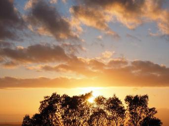 Keywords: clouds sky sunset passage sun evening romantic romance yellow bright sunlight evening hours trees