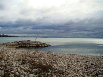 Keywords: clouds sky water lake stones fishing bay storm