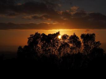 Keywords: clouds sunset passage sun evening romantic romance yellow bright sunlight evening hours trees forest sky