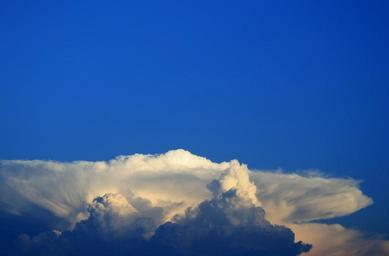 Keywords: clouds white dense background anvil shaped flat foreground heaped peaked shadowed sky blue