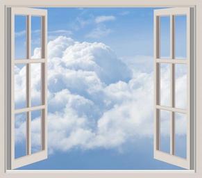 Keywords: clouds window frame open seen through window scene through window fluffy white clouds through window photo view scenic