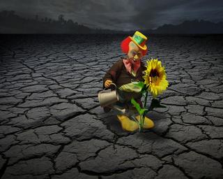 Keywords: clown circus face funny fun sun flower photo montage composing cap hat clothing watering can landscape water