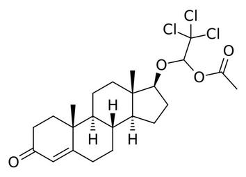 Keywords: Cloxotestosterone acetate.svg Chemical structure of cloxotestosterone acetate Own 13 06 27 November 2016 UTC Ed Edgar181 Testosterone Prodrugs Trichloromethyl compounds Acetate esters