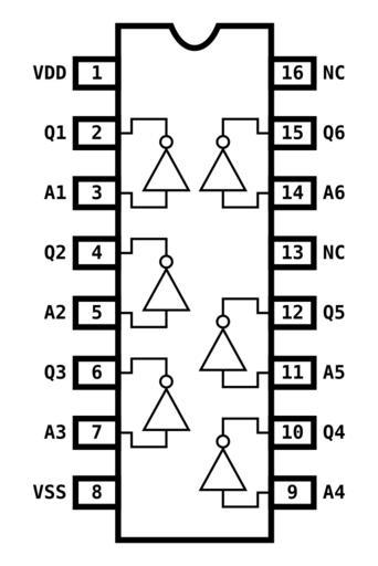 | Keywords: CMOS 4049 diagram.svg A technical drawing of the standard CMOS 4049 integrated circuit including pinout information and internal gate schematics A 4049 datasheet was used as a reference I created this file by hand in Notepad; large portions of it are based on my own previous work on similar layouts 2007-04-14 Joshua Griisser 05 27 14 April 2007 UTC I hereby release this work into the public domain This version replaces a previous upload of mine that was not to proper scale The English Wikipedia has an image Image NOT Pinout jpg that this is intended to replace IC pinout diagrams |