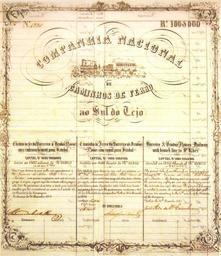 | Keywords: CNCFST Stock certificate.jpg pt Título de acção da CNCFST - Companhia Nacional de Caminhos de Ferro ao Sul do Tejo que construiu o caminho de ferro do Barreiro a Vendas Novas com um ramal para Setúbal em Portugal en Stock certificate of the CNCFST - Companhia Nacional de Caminhos de Ferro ao Sul do Tejo Southern Tagus Railways National Company who built the railway between Barreiro and Vendas Novas with a branch to Setúbal in Portugal 1858-12-31 REIS Francisco Cardoso dos; GOMES Rosa Maria; GOMES Gilberto et al Os Caminhos de Ferro Portugueses 1856-2006 S l CP-Comboios de Portugal e Público-Comunicação Social S A 2006 238 p ISBN 989-619-078-X Companhia Nacional de Caminhos de Ferro ao Sul do Tejo other versions Custom license marker 2014 12 31 Anonymous-EU Uploaded with UploadWizard Companhia Nacional de Caminhos de Ferro ao Sul do Tejo 1858 in rail transport in Portugal Stock certificates from Portugal Os Caminhos de Ferro Portugueses 1856-2006 |