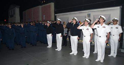 | Keywords: CNP remembers 9-11 in Chicago and Naval Station Great Lakes 140912-N-IK959-072.jpg en Vice Adm William F Bill Moran right chief of naval personnel CNP salutes the National Anthem along with Rear Adm Rich Brown second from right Commander Naval Service Training Command NSTC during a capping ceremony on board Recruit Training Command RTC here Sept 12 Moran made his second visit to the Navy ™s only boot camp and was the reviewing officer at the weekly Pass-in-Review PIR graduation More than 830 recruits officially became Sailors at the PIR A capping ceremony is where recruits officially recognized as Sailors by donning their Navy ball caps after successfully completing Battle Stations on board USS Trayer BST 21 Trayer a 210-foot-long Arleigh Burke-class destroyer simulator the Navy ™s largest is the platform where recruits take their final test Battle Stations a week before graduating Battle Stations is a 12-hour capstone event of what the recruits show and perform what they have learned over their eight weeks of boot camp It is 17 different scenarios including firefighting damage control watch standing and mass casualty evacuations After successfully completing Battle Stations the recruits get to hand in their Recruit Ball Caps for a Navy Cap signifying that they are no longer recruits RTC trains more than 37 000 Sailors annually Official U S Navy photo by Scott A Thornbloom/Released 2014-09-12 Scott Thornbloom https //www dvidshub net/image/1550810 140912-N-IK959-072 2014-09-15 14 34 GREAT LAKES IL US PD-USGov-Military-Navy Naval Station Great Lakes Images from DoD uploaded by Fæ |