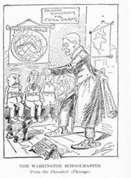 | Keywords: CoalBarons.JPG The Washington Schoolmaster An editorial cartoon about the w Coal strike of 1902 a strike by the United Mine Workers of America in the anthracite coal fields of eastern Pennsylvania In the cartoon a sign on the wall states Primary Classroom for Coal Barons and a world map shows a disproportionately large state of Pennsylvania President Theodore Roosevelt intervened in the strike and the cartoon depicts him as poised to dole out punishment to industry; he is holding a Switch corporal punishment switch labeled Federal Authority Shown on the bench are industry leaders financier J P Morgan; George F Baer President of the Philadelphia and Reading Railroad; and two coal company executives John Markle G B Markle Co and T P Fowler Scranton Coal Co Elk Hill Coal Iron Co Chicago Chronicle 1902 Charles Lederer 1856-1925 cartoonist PD-old-100 Original upload log en wikipedia Coal JPG 2006-03-29 03 30 Rjensen 744×1012× 166930 bytes <nowiki>US cartoon 1902</nowiki> Coal Strike of 1902 1900s political cartoons of the United States 1902 cartoons Caricatures of Theodore Roosevelt J P Morgan banker Newspapers of Chicago |