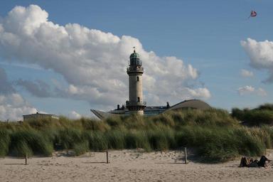 Keywords: coast baltic sea warnemünde lighthouse sea beach summer sand beach sky clouds holiday nature grass plant dunes