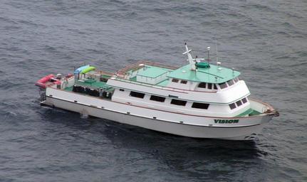 | Keywords: Coast Guard responds to sinking vessel Vision DVIDS1088175.jpg en LOS ANGELES -- Coast Guard Sector Los Angeles received a report that the 90-foot commercial dive vessel Vision was taking on water seven miles north of San Nicolas Island Calif The vessel's crew reported that they lost their rudder and were sinking The crew was able to apply a temporary patch to slow the flooding and the Coast Guard requested all 33 people 26 passengers and seven crew members to put on lifejackets The patch on the vessel is holding well and there is no need to pump at this time Coast Guard assets that responded included an HH-65 Dolphin helicopter from Air Station Los Angeles an MH-60 Jayhawk helicopter from Sector San Diego the Coast Guard Cutter Blackfin and a C-130 aircraft from Air Station Sacramento The Naval vessel Robert E Peary also arrived on scene to assist Coast Guard Cutter Blackfin will be evacuating the passengers off the dive vessel for safe transport 2008-08-03 https //www dvidshub net/image/1088175 1088175 2013-12-11 23 31 LOS ANGELES CA US PD-USGov Eurocopter HH-65/MH-65 Dolphin Images from DoD uploaded by Fæ |