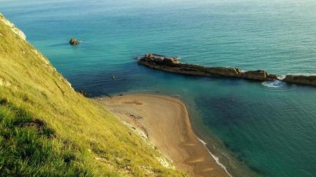 Keywords: coast sea ocean shore rocks cliff blue water wilderness pristine beach sand nature summer outdoor steep view