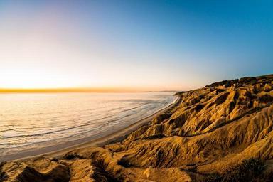 Keywords: coast shore hills mountains cliffs view horizon sunset sunrise sunlight bright landscape coastline island seascape sea beach ocean
