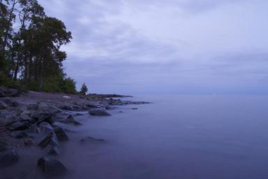 Keywords: coast shore long exposure waves sea ocean beach rocky craggy water nature coastline landscape scenic dark twilight evening trees