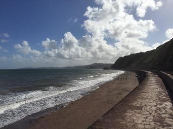 Keywords: coast water sand blue rail summer line nature landscape england cliff sky landmark shore uk train tourist outdoor seaside europe wave