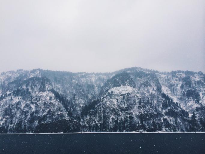 Keywords: coast winter snow snowfall hills water lake landscape season shoreline