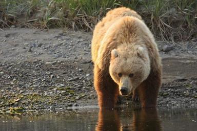Keywords: coastal brown bear portrait wilderness nature water wildlife fur wild powerful predator river wading foraging walking outdoors