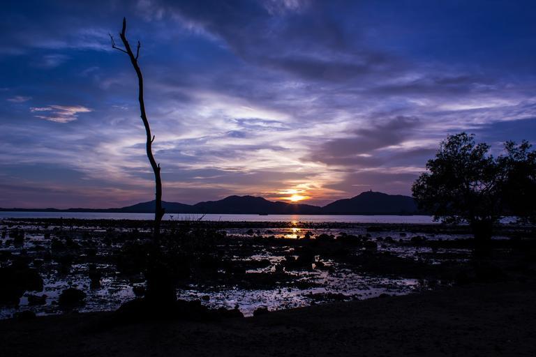 Keywords: coastline twilight dusk sunset ocean sea shore nature landscape coast low tide