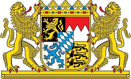 | Keywords: Coat of arms of Bavaria.svg blazon of de Freistaat Bayern Großes Wappen Bavaria Greater coat of arms Bavière Grandes armes de žDas große bayerische Staatswappen besteht aus einem gevierten Schild mit einem Herzschild Das erste Feld zeigt in Schwarz einen aufgerichteten goldenen rotbewehrten Löwen; das zweite Feld ist von Rot und Weiß Silber mit drei aus dem Weiß aufsteigenden Spitzen geteilt; das dritte Feld zeigt einen blauen goldbewehrten Panther auf weißem silbernem Grund; im vierten Feld sind auf Gold drei schwarze übereinander angeordnete herschauende rotbewehrte Löwen dargestellt Der Herzschild ist in Weiß Silber und Blau schräg rechts gerautet Der Schild wird von zwei goldenen rot bewehrten Löwen gehalten Auf dem Schild ruht eine Volkskrone; sie besteht aus einem mit Steinen geschmückten goldenen Reifen der mit fünf ornamentalen Blättern besetzt ist Das Kleine bayerische Staatswappen besteht aus einem in Weiß Silber und Blau schrägrechts gerauteten Schild auf dem die Volkskrone ruht en Quarterly the first Sable a lion Or the second dancetty of three Argent and Gules the third Argent a panther Azure armed Or the fourth Or three leopards Sable armed Gules An inescutcheon fusilly in bend Argent and Azure Supported by two lions Or langued and armed Gules fr « Écartelé au premier de sable au lion d'or lampassé et armé de gueules au deuxième coupé émanché de gueules et d'argent de trois pièces la « herse franconienne » au troisième d'argent à une panthère d'azur armée d'or et lampassée de gueules au quatrième d'or à trois léopards de sable armés et lampassés de gueules ; sur le tout fuselé en bande d'argent et d'azur Supporté par deux lions d'or lampassés et armés de gueules Timbré d'une couronne populaire constituée d'un bandeau doré orné de pierres et surmonté de cinq feuilles ornementales » de eingeführt am 5 Juni 1950 mit dem žGesetz über das Wappen des Freistaates Bayern Freistaat Bayern Bayerisches Staatsministerium für Unterricht und Kultus http //www g8-in-bayern de/imperia/md/content/pdf/aktuelles/g8_broschuere04 pdf G8 Das neue Gymnasium in Bayern PDF-Broschüre Created with Inkscape v -COAInformation other versions <gallery> Image Bayern Wappen svg Kleines Wappen </gallery> PD-Coa-Germany the Bavarian Government DEFAULTSORT Bayern derivative works Coat of arms of the Kingdom of Bavaria svg SVG coats of arms of Germany Coats of arms of Bavaria Quarterly with an inescutcheon Volkskrone Lions in supporters Lion of Palatinate in heraldry Frankenrechen Panthers in heraldry Bendy lozengy shields Pedestals in compartments Location not applicable |