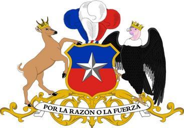 | Keywords: Coat of arms of Chile (c).svg blazon of cs Znak Chilské republiky Republik Chile Republic of Chile República de Chile es El Escudo de Armas presenta una estrella de plata de cinco picos al centro de un campo cortado azul turquí el superior y rojo el inferior y su forma es la fijada por el modelo oficial aprobado por decreto de Guerra N° 2 271 de 4 de septiembre de 1920 conforme a la ley y el cual además tiene por timbre un plumaje tricolor de azul turquí blanco y rojo; por soportes un huemul rampante a su derecha y un cóndor a su izquierda en la posición que fija ese modelo coronado cada uno de estos animales con una corona naval de oro; y por base un encaracolado cruzado por una cinta con el lema Por la razón o la fuerza todo en conformidad al referido modelo 2014-03-18 B1mbo Echando una mano Coat of arms of Chile svg 50 Burelete en colores de acuerdo con el modelo que aparece en el decreto de Guerra N° 2 271 de 4 de septiembre de 1920 Echando una mano Coat of arms of Chile svg PD-Chile insignia other versions 200px 200px cc-by-sa-3 0 Uploaded with UploadWizard SVG coats of arms of Chile Coats of arms of Chile Condors in supporters Huemuls in supporters Naval crowns |
