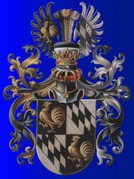 | Keywords: coat of arms european tradition hereditary characters person family group of people noble family knighthood knight hahn argyle pattern wing feather helm knight helmet heraldry gems nobleman old antique gold silver black white armor metal visor middle ages on ultramarine palatial stylized gold medallion chain |
