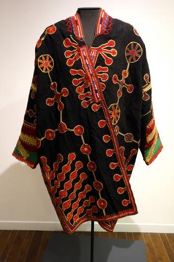 | Keywords: Coat, Mangal Pashtun people, Afghanistan, view 1, early to mid 20th century, wool, cotton, silk, metal thread, glass and plastic beads - Textile Museum of Canada - DSC00922.JPG en Exhibit in the Textile Museum of Canada 55 Centre Avenue Toronto Ontario Canada Photography was permitted in the museum without restriction 2013-07-04 14 14 15 own Daderot cc-zero Textiles in the Textile Museum of Canada Uploaded with UploadWizard Embroidery | ||||