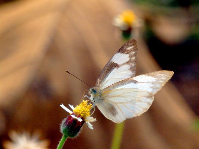 Keywords: coatbuttons mexican daisy butterfly white brown flower nature summer floral animal yellow wing fly garden natural grass sward herb gardening