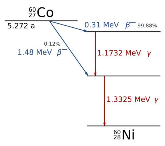 | Keywords: Cobalt-60 Decay Scheme.svg The radioactive Decay scheme of Cobalt 60 The cobalt decays to nickel via beta-minus decay then two more stable nickel nuclei via two further gamma emissions Self-made Inkscape http //www jimoid com/Physics/Clinical 20Physics/co60_decay htm 05/10/2007 Inductiveload with all lines File Cobalt-60 Decay Schemep svg Cobalt-60 Decay schemes |