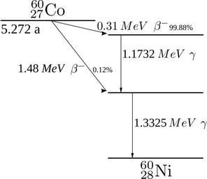 Keywords: Cobalt-60 Decay Schemep.svg en Cobalt 60 decay Own Tubas File Cobalt-60m-decay svg Based on File Cobalt-60 Decay Scheme svg; second both beta-line added energies and lifetime more accurate Cobalt-60 Decay schemes