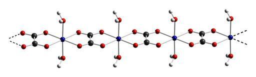 | Keywords: Cobalt(II)-oxalate-dihydrate-from-xtal-2005-CM-3D-balls.png Ball-and-stick diagram of part of the crystal structure of cobalt II oxalate dihydrate Co ox <sub>2</sub> OH<sub>2</sub> <sub>2</sub><sub> ˆž</sub> Colour code Cobalt Co blue Carbon C black Oxygen O red Hydrogen H white Crystal structure from http //dx doi org/10 1107/S0108270104030409 Acta Cryst 2005 C61 m58-m60 Image generated in http //www crystalmaker com/ CrystalMaker 8 3 Own 2010-09-19 Ben Mills Benjah-bmm27 Images by Ben Mills Ball-and-stick models Cobalt II oxalate |