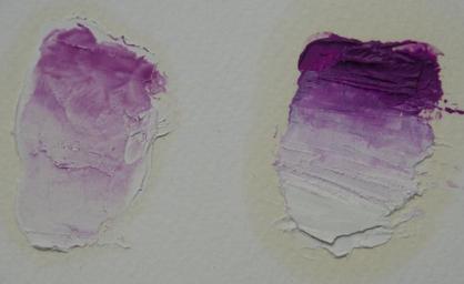 Keywords: Cobalt violet 1.png en Cobalt phosphate in oil; a standoil glaze on zinc white on the left the mass tone on the right 2016-11-15 own MWAK other versions cc-zero Cobalt compounds
