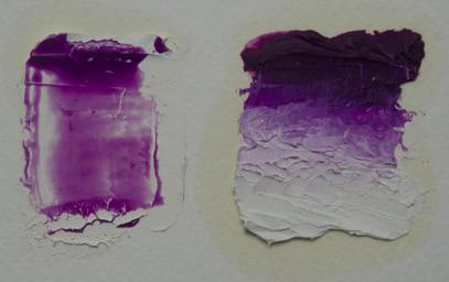 Keywords: Cobalt violet 2.png en Cobalt ammonium phosphate in oil; a standoil glaze on zinc white on the left the mass tone on the right 2016-11-15 own MWAK other versions cc-zero Cobalt compounds