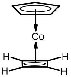 Keywords: CobaltCbCp.svg Skeletal formula of Cyclobutadien-cyclopentadienyl-cobalt Created using ISIS/Draw and Inkscape Own Krakatit 2008-09-03 Cyclopentadienyl complexes
