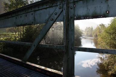 Keywords: cobweb bridge river water fog landscape moist autumn