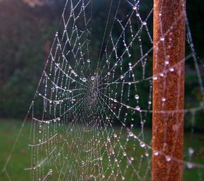 Keywords: cobweb network dew drip sparkle autumn beaded drop of water nature close