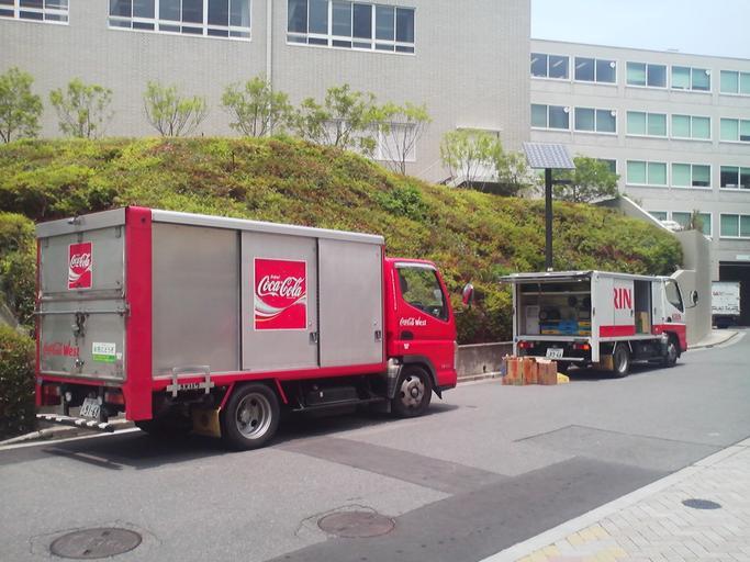 Keywords: Coca-Cola vs Kirin Beverage.jpg ja コカ・コーラウエストとキリンビバレッジの れぞれの飲料運搬車を撮影 2013-07-24 11 51 50 own Tokumeigakarinoaoshima cc-zero Uploaded with UploadWizard Coca-Cola delivery trucks Kirin Beverage Delivery vehicles in Japan