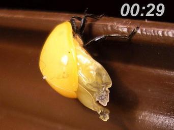 | Keywords: Coccinella septempunctata emerging from pupa2.png Seven-spot ladybird Coccinella septempunctata emerging from it's pupa <br>Note that even the elytra need to be pumped up; At first wrinkled and open towards the hind body Around 10 minutes after emergence began they're closed five minutes later they're fully stretched smooth now and the beetle has wandered off to find a spot for pumping up the wings During the pumping of the wings also the colouration of the elytra slowly begins to develop About half a day later the beetle clearly has it's characteristic colours - although still visibly fresh <br>Location Hengelo Overijssel Netherlands<br>Keywords ladybug lady beetle 7-spot<br>See also P4b species page or category Uitsluipen van Zevenstippelig lieveheersbeestje<br>Locatie Hengelo Ov Schlüpfen eines Siebenpunkt-Marienkäfers Coccinella septempunctata Mariquita de siete puntos Coccinella septempunctata Coccinelle à sept points Coccinella septempunctata Coccinella_septempunctata_emerging_from_pupa jpg 2009-12-22 17 26 UTC Coccinella_septempunctata_emerging_from_pupa jpg Pudding4brains derivative work B kimmel <span class signature-talk >talk</span> cutted B kimmel Coccinella_septempunctata_emerging_from_pupa jpg Coccinella septempunctata eclosing from pupa |