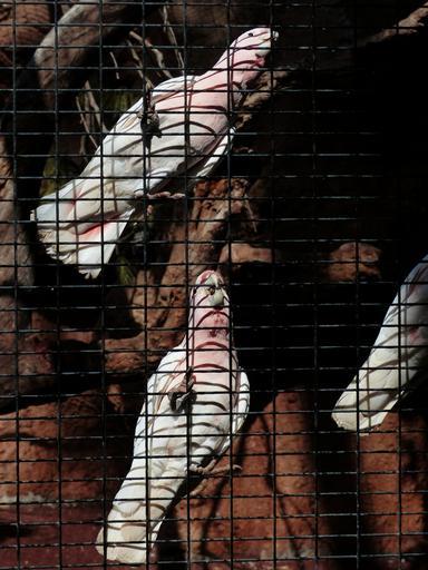 Keywords: cockatoo bird pink captivity cage grid inca kakadu cacatua leadbeateri bill bite open behind barriers imprisoned