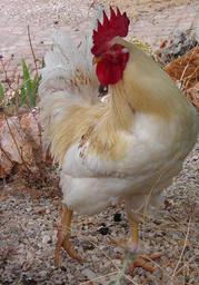Keywords: cockerel rooster poultry bird chicken animal farm livestock agriculture white male domestic fowl rural standing food chick