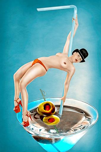 Keywords: cocktail glass straw tube girl erotica breast nipple heels shoes polidens dream bar map bowler hat