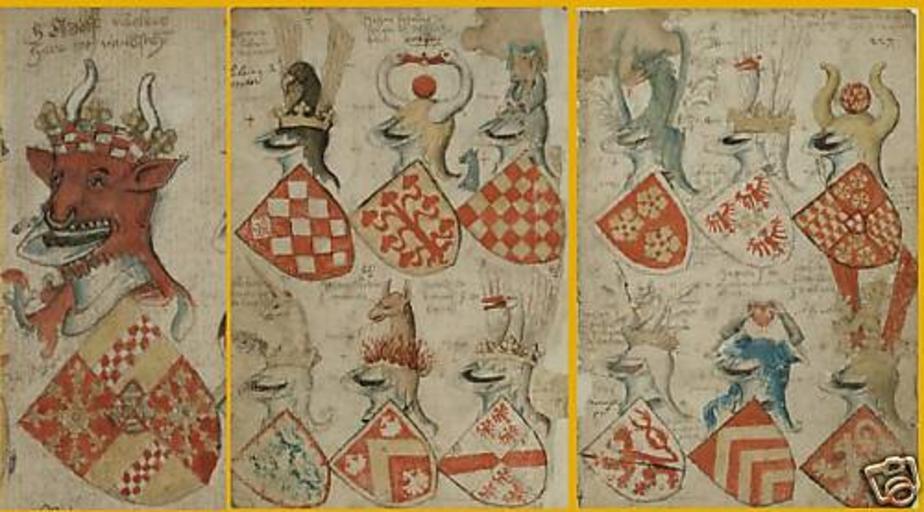 | Keywords: Codex-148-armorial-quinzieme-siecle.jpeg  en Text is from web page on http //cgi benl ebay be/Heraldry-Heraldik-Heraldiek-Heraldique-Armorial-Wappen-/200362992737 Ebay CODEX 148 Armorial inédit du quinzième siècle Blasonnements des 124 armoiries du Ms 148 des Codices Selecti notices bio-bibliographiques sur chacun des Sires et quelques Dames et dont une importante série de Chevaliers de l'Ordre de la Toison d'Or Tirage à part en feuilles détachées de l'Armorial en couleurs sous farde http //cgi benl ebay be/Heraldry-Heraldik-Heraldiek-Heraldique-Armorial-Wappen-/200362992737 Author century 15 PD-old Related files <gallery> File Antoine de Vergy jpg File Blason Vergy svg File Pierre de Bauffremont jpg File Jean V de Créquy jpg File Blason Charles III de Créqui svg File Simon de Lalaing 1405-1477 jpg File Blason Famille de Lalaing svg File Philippe Seigneur de Ternant jpg </gallery> Coats of arms of families of Germany Marshalled Cleves and Mark County of Mark Coats of arms of families of Belgium Coats of arms of families of France Coats of arms of the House of Beaufremont Swans in crest Vairy Or and gules Armorial codex 148 Pierre de Bauffremont Antoine de Vergy Guy de Pontailler Jacques de CrèvecÅ“ur David de Brimeu Luxemburg dynasty Jean de Créquy Simon de Lalaing 1405-1477 Philippe de Ternant Guilbert de Lannoy Jean de Luxembourg-Haubourdin Unicorns in coats of arms of families of Belgium Lannoy Guilbert de Unicorns in crest Lannoy Guilbert de Coats of arms of the county of Ravensberg ImageNote 1 189 7 69 152 500 277 2 Jehan Signour de Crequi 1395-1474 ImageNoteEnd 1 ImageNote 2 373 150 66 125 500 277 2 Jaques Signour de Crevecur ImageNoteEnd 2 ImageNote 3 435 28 58 122 500 277 2 Piere de Beffremont 1400-1472 ImageNoteEnd 3 ImageNote 4 127 9 60 148 500 277 2 Symon de Lalain 1405 “1476 ImageNoteEnd 4 ImageNote 5 439 150 52 122 500 277 2 Guly de Pontailliez ImageNoteEnd 5 ImageNote 6 312 6 61 143 500 277 2 Antoine de Vergy 1375-1439 ImageNoteEnd 6 ImageNote 7 1 4 117 268 500 277 2 Kleve-Mark ImageNoteEnd 7 ImageNote 8 312 150 58 123 500 277 2 Jehan bastaert de Santpoel 1400-1466 ImageNoteEnd 8 ImageNote 9 374 6 59 142 500 277 2 Jaque de Brimeur ImageNoteEnd 9 ImageNote 10 189 160 50 114 500 277 2 Jehan de la Clite ImageNoteEnd 10 ImageNote 11 127 160 58 111 500 277 2 Gillebert de Lannoy 1386 “ 1462 ImageNoteEnd 11 ImageNote 12 239 161 63 112 500 277 2 David de Brimeu ImageNoteEnd 12 ImageNote 13 259 7 46 150 500 277 2 Philippe Sire de Ternant 1400-1456 ImageNoteEnd 13 |