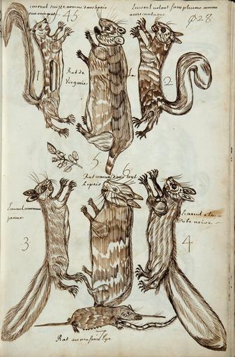 | Keywords: Codex canadensis, p. 28.jpg fr Codex canadensis p 28<br> 1 ecureul suisse nomme dans le pais / oua ouingout <br>2 Ecureul volant sans pleume nomme / anascantaoue <br>3 Ecureul commun / jaune <br>4 Ecureul a la / Robe noire <br>5 Rat de La Virginie <br>6 Rat comun dans tout Le pais <br>7 Rat au museau Egu en 1 Swiss squirrel chipmunk called oua oningout in the country <br>2 Featherless flying squirrel named anascantaoue <br>3 Common yellow squirrel <br>4 Black-haired squirrel <br>5 Virginia rat <br>6 Rat common in the whole country <br>7 Sharp-nosed rat ca 1675-82 http //www collectionscanada gc ca/codex/026014-1100-f html Louis Nicolas 1634 - ca 1682 other versions PD-old-100 Codex canadensis Uploaded with UploadWizard |